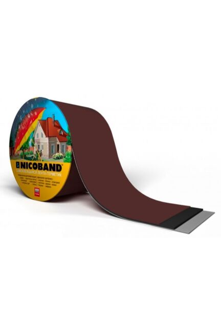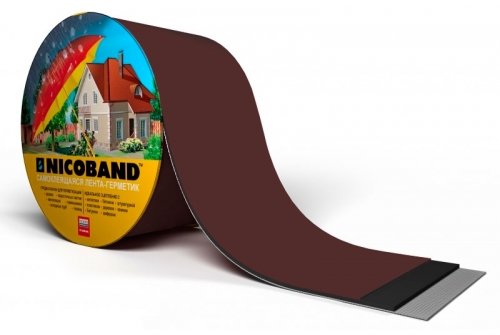 Самоклеющаяся лента марки NICOBAND предназначена для герметизации швов и трещин. Материал представляет собой трёхслойное изделие. Верхний слой – цветное покрытие с УФ-защитой. Средний представляет собой самоклеющийся герметизирующий материал. Нижняя часть – защитная пленка, которая легко отсоединяется. Лента Никобенд нашла широкое применение: материал используют для ремонта кровли, изоляции примыканий и водосточных систем. Изделие отличается хорошим сцеплением с различными материалами, включая древесину, стекло, пластик и бетон.