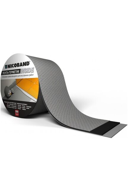 Самоклеющаяся лента марки NICOBAND предназначена для герметизации швов и трещин. Материал представляет собой трёхслойное изделие. Верхний слой – цветное покрытие с УФ-защитой. Средний представляет собой самоклеющийся герметизирующий материал. Нижняя часть – защитная пленка, которая легко отсоединяется. Лента Никобенд нашла широкое применение: материал используют для ремонта кровли, изоляции примыканий и водосточных систем. Изделие отличается хорошим сцеплением с различными материалами, включая древесину, стекло, пластик и бетон.