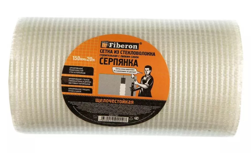 Серпянка — это лента, представляющая собой систему переплетенных стекловолокон. Серпянка имеет сетчатую структуру, что позволяет избегать попадания под ленту воздуха и образования вздутий и неровностей. Сетчатая структура покрыта равномерным слоем клея постоянной липкости, что позволяет качественно, быстро и технологично выполнять работы с ее использованием даже непрофессионалам. Применяется для внутренних работ, для армирования стыков гипсокартона, ДСП, оргалита и других листовых материалов, для армирования мест примыкания дверных и оконных коробок к стенам, для армирования трещин, углов и швов бетонных и оштукатуренных поверхностей, для армирования поверхностей стен и потолков.