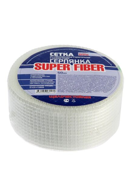 Серпянка — это лента, представляющая собой систему переплетенных стекловолокон. Серпянка имеет сетчатую структуру, что позволяет избегать попадания под ленту воздуха и образования вздутий и неровностей. Сетчатая структура покрыта равномерным слоем клея постоянной липкости, что позволяет качественно, быстро и технологично выполнять работы с ее использованием даже непрофессионалам. Применяется для внутренних работ, для армирования стыков гипсокартона, ДСП, оргалита и других листовых материалов, для армирования мест примыкания дверных и оконных коробок к стенам, для армирования трещин, углов и швов бетонных и оштукатуренных поверхностей, для армирования поверхностей стен и потолков. Прочная самоклеящаяся сетка 50 мм х 45 м для армирования швов, предотвращает трещины, устойчива к влаге и температуре, подходит для отделочных работ.