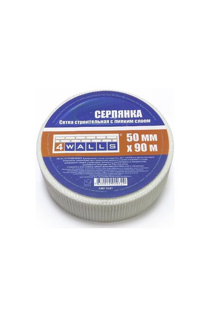Серпянка 4walls стекловолокно применяется для надежного армирования поверхностей стен и потолков, для стыков гипсокартона, ДСП и других листовых материалов; для армирования мест примыкания дверных и оконных коробок к стенам. Серпянка устойчива к щелочным растворам. Самоклеящаяся стеклотканевая лента 50 мм х 90 м для армирования стыков, устойчива к влаге и деформациям, ускоряет отделочные работы.