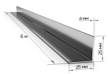 Металлический уголок 25×25×4 мм,  из стали, марки Ст.3СПдлиной 6 м и весом 9 кг. Для прочных каркасов, монтажных и строительных работ, устойчив к нагрузкам.