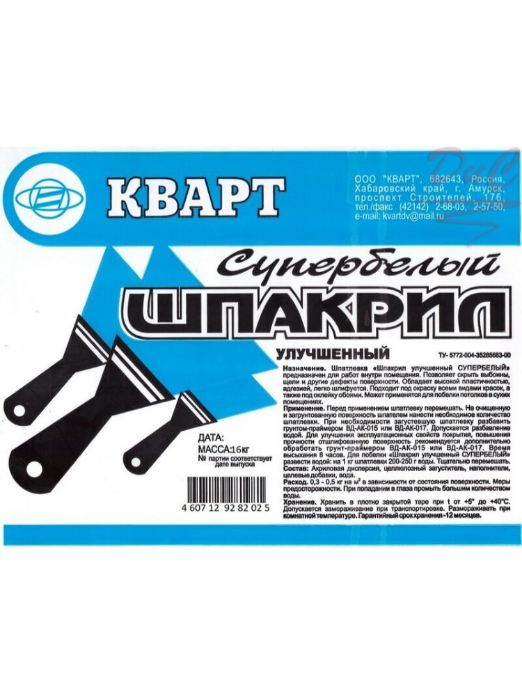 - Объем упаковки — 16 кг, густая, не дает усадки и не трескается после высыхания.