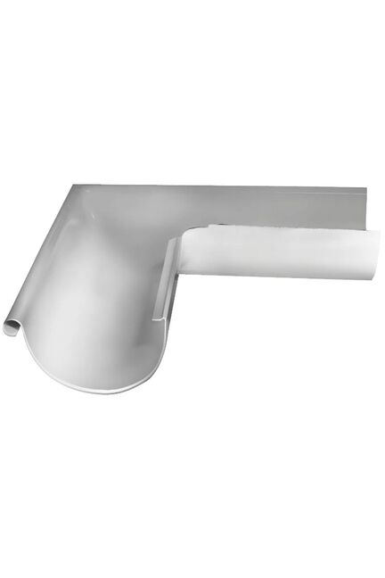 Используются для изменения направления потока воды, монтируются на внешних и внутренних углах кровли. Выполнены бесшовным способом (глубокой вытяжкой металла), что обеспечивает жесткость, эстетичность, герметичность и отличную гидродинамику. Внешний угол для водостока: оцинкованная сталь с полимерным покрытием, размер 125/90 мм, белый цвет, высокая герметичность и простота монтажа.