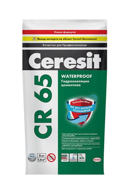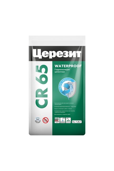 Масса гидроизоляционная CR 65 — сухая цементная смесь для создания жесткого водонепроницаемого покрытия. Используется во внешней и внутренней отделке при гидроизоляции крытых бассейнов, водных резервуаров, влажных, подземных и заглубленных помещений. Легко наносится, устойчива к воздействию щелочи и соли. Смесь рекомендуется закрывать плиточной облицовкой, безгипсовой стяжкой или штукатуркой. Готовое решение для гидроизоляции бетона и кирпича, устойчива к морозу, воде, легко наносится, для внутренних и наружных работ.