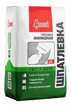 Сухая шпаклевочная смесь на основе гипса с полимерными добавками. Гипсовые сухие смеси могут быть различного цвета, от белого до серого и даже до розового. Это объясняется наличием природных примесей в гипсовом камне. Цвет смеси никак не влияет на ее характеристики. Применяется для поверхностного шпаклевания потолков и стен с обычным твердым основанием внутри помещений с нормальной влажностью, включая кухни и ванные. Не трескается и не дает усадки. Короткие сроки высыхания на поверхности. Материал изготовлен из экологически чистого природного минерала (гипса) и не содержит вредных для здоровья человека веществ. Финишная гипсовая шпатлевка, легко наносится, быстро сохнет, идеально гладкая основа для окраски и обоев, безопасна и удобна в применении.