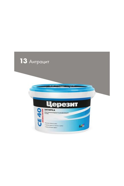 Влагостойкая затирка для плиточных швов, устойчива к плесени и загрязнениям, для внутренней и наружной отделки, цвет антрацит, 2 кг.