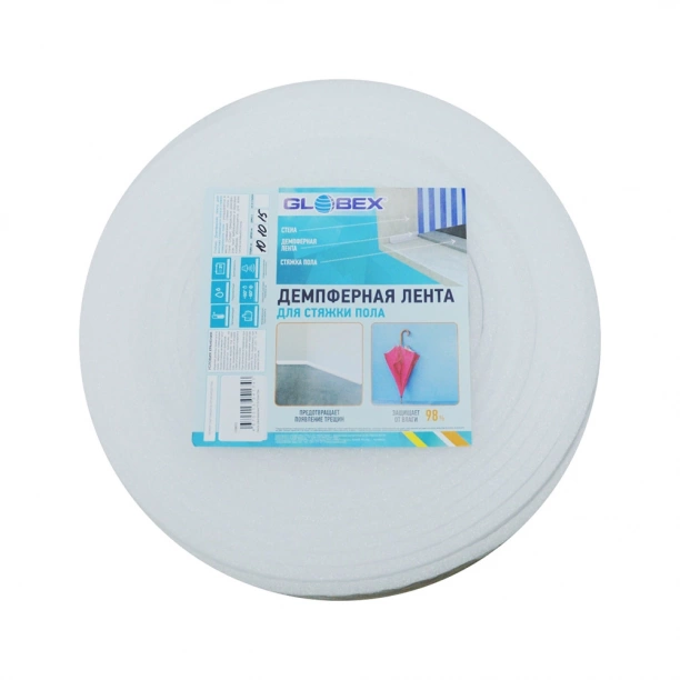 Лента демпферная П5/10см/30м Globex применяются для изолирования «плавающей» стяжки от стены и демпфирования любых строительных конструкций. Демпферная лента 5 мм x 10 см x 30 м – для разделения наливных полов, предотвращает трещины, устойчива к влаге и проста в монтаже.