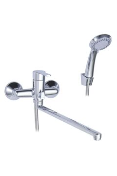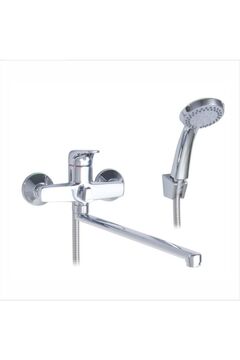 Гарантия: 5 лет Картридж с керамическими дисками. Материал: латунь Однорычажный смеситель с длинным изливом 35 см для удобного пользования ванной и душем. Простой монтаж, долговечность, универсальное применение.