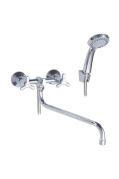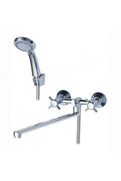 Гарантия: 5 лет Механизм:Латунные трехпроходные вентили с керамическими дисками 180°. Материал:Латунь Двухручковый смеситель с изливом 20 см для ванны, латунь, хром, точная регулировка температуры, долговечность, настенный монтаж.
