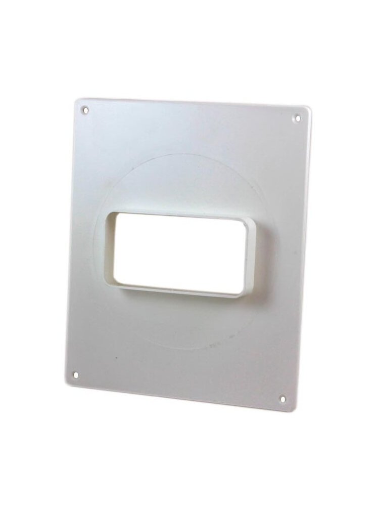 Площадка торцевая пластиковая: предназначена для оформления вентиляционных отверстий и присоединений воздуховодов; настенный монтаж при помощи шурупов; материал:полистирол; размеры: высота 24см, ширина 20,5см, раст.между отверстиями креплений: вертик.22,4см, горизонт.18,4см, внутр.ширина отверстия 12см, внутр.высота отверстия 6см, цвет: белый Пластиковая площадка 205х240 с фланцем 60х120, устойчива к влаге, легко монтируется; для вентиляции, отопления и инженерных систем.