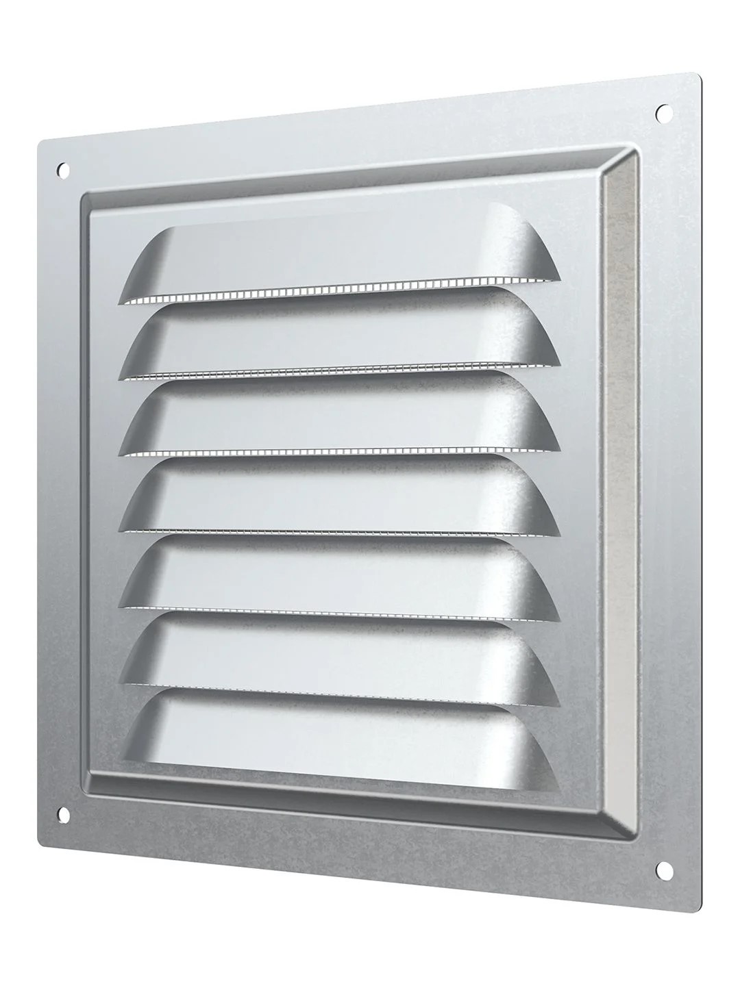 Оцинкованная стальная решетка 150×150 мм с защитной сеткой для надежной вентиляции и защиты от мусора. Для влажных и сухих помещений.