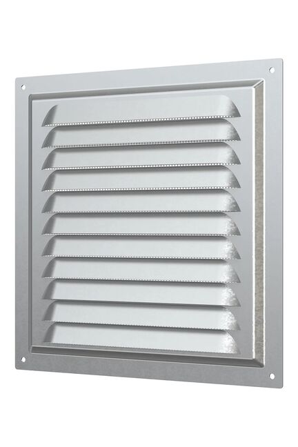 Стальная вентиляционная решетка 200×200 мм с антикоррозийной обработкой и сеткой для защиты от мусора и насекомых, легкий монтаж.