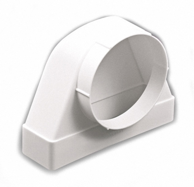 Соединитель угловой 90̊C плоского воздуховода с фланцевыми воздухораспределителями, применяется для соединения плоских воздуховодов и вентиляционных модулей; высота 147мм, ширина 120мм, Φ100мм Угловой соединитель 90° с фланцем 60×120/D100 для герметичного монтажа вентиляции, долговечен, прост в установке, устойчив к коррозии.