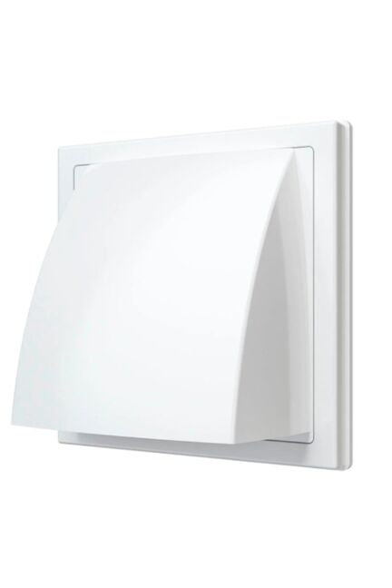 Стенной вытяжной выход с обратным клапаном, размер 190×190 мм, фланец D150/160, влагостойкий пластик, защита от сквозняков и пыли.