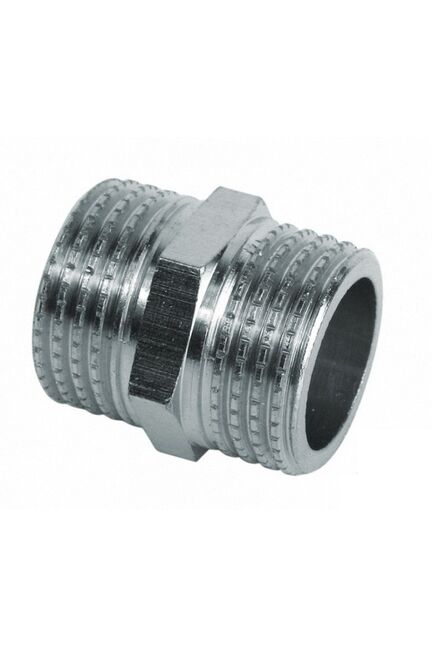 Латунный бочонок с никелировкой для соединения труб 1/2". Коррозионная стойкость, идеален для воды и отопления, надежная резьба.