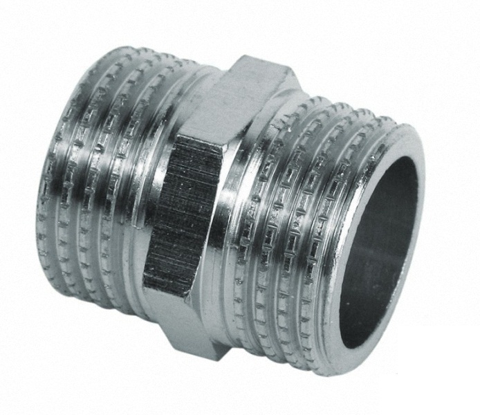 Бочонок Ду 25 никелированный, устойчив к коррозии и высоким давлениям, для надёжного соединения труб в системах водоснабжения и отопления.