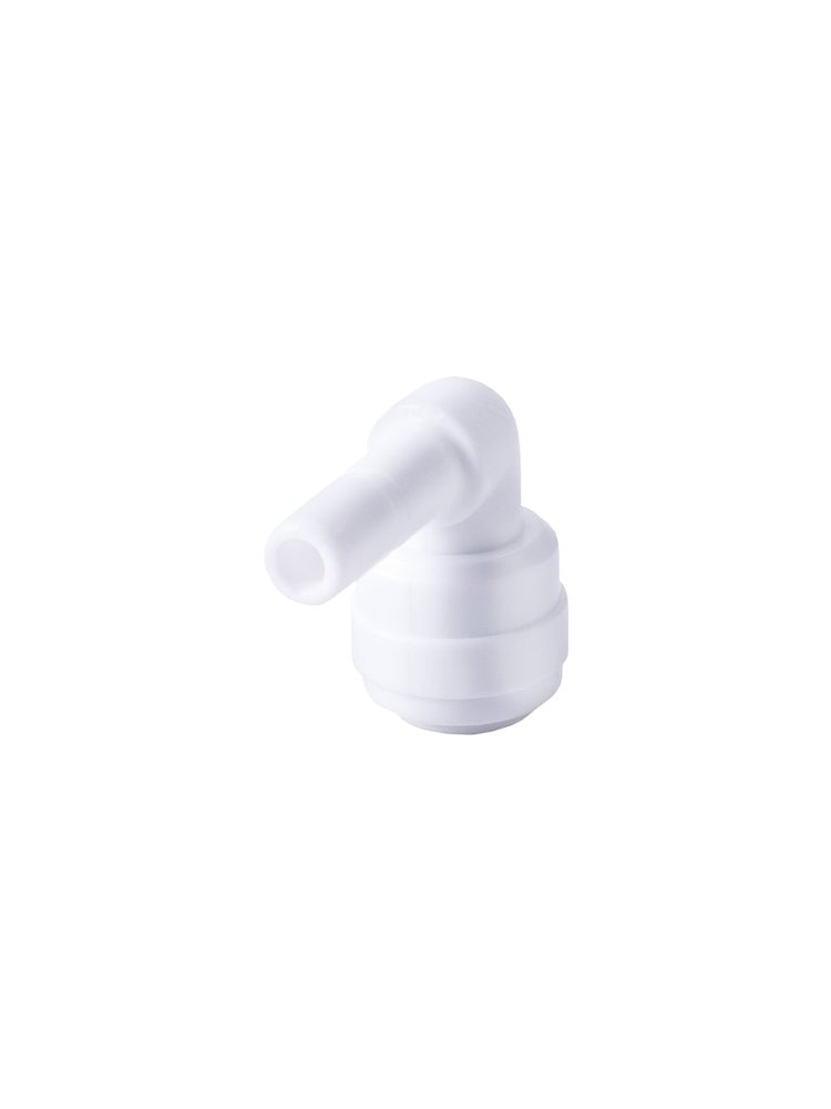Угловой пластиковый фитинг. Используется для быстрого монтажа фильтрующих элементов систем водоочистки «ПРОФИ», «Эксперт». Угловой фитинг-переходник 1/4" — 1/4" для герметичного и быстрого соединения труб в системах водоснабжения и фильтрации.