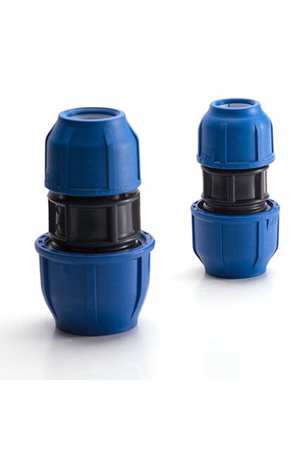 Муфта компрессионная для ПЭ труб d32х1, PN16, устойчива к давлению до 16 бар, обеспечивает герметичное и быстрое соединение без сварки.