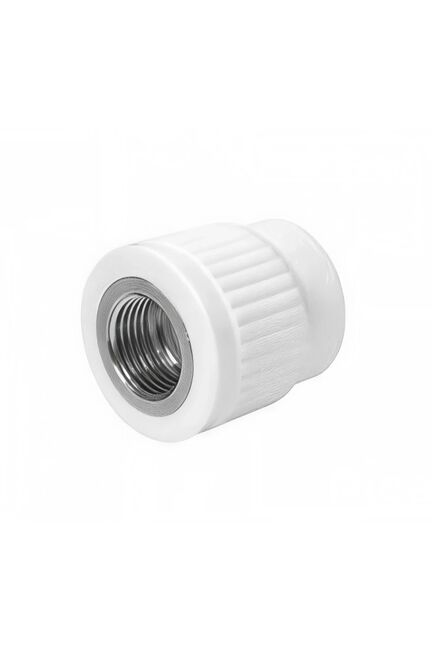Муфта для соединения PPR труб с резьбовой арматурой, прочная латунная вставка, рабочая температура до 95°C, стойкость к давлению до 25 бар.
