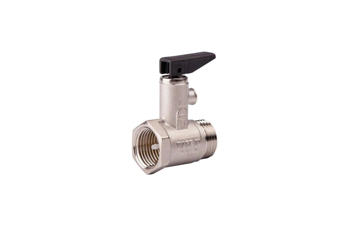 Предохранительный (защитный, обратный, сбросной) клапан к водонагревателю, бойлеру Аристон (Ariston). размер 1/2, расчитан на давление 8,5 Бар (Bar). Клапан монтируется на трубе подачи холодной воды в бойлер. Когда бойлер набирает максимальный объем воды, клапан не дает воде вытекать в обратную сторону. Предохранительный клапан предназначен для защиты бойлера от перепадов давления возникающих при нагреве воды, так же для сброса излишнего объёма. Размер (Д*В*Ш): 13*2,5*10 см Обеспечивает надежную защиту водонагревателя от обратного потока и перепадов давления, выдерживает до 8,5 Бар, латунный корпус, 1/2".