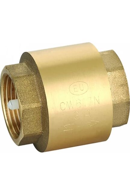 Клапан обратного действия DN 25: латунь, пластиковый сердечник — предотвращает обратный отток воды, защищает оборудование, прост в установке.