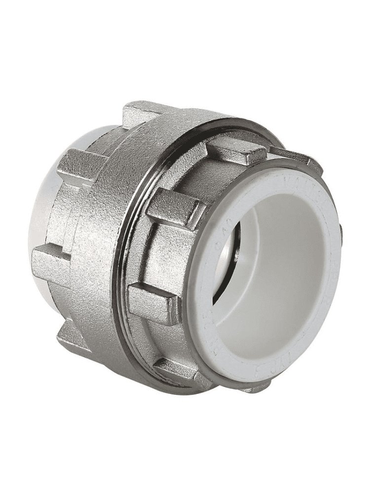 Разъемное муфтовое соединение для пластиковых труб 20 мм, выдерживает до 25 бар, легко устанавливается, гарантирует герметичность.