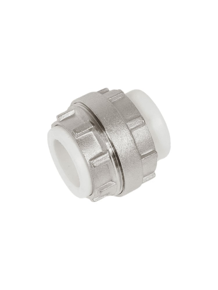Муфтовое разъёмное соединение PPR 25 мм для водоснабжения и отопления, легко монтируется, надёжно герметизирует и устойчиво к коррозии.