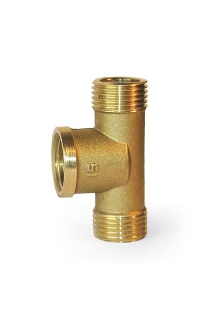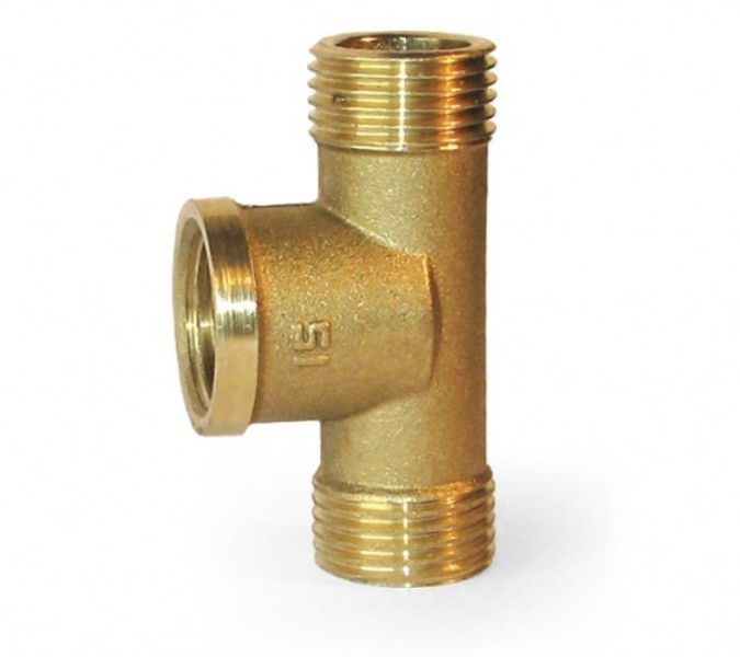 Тройник 15 мм, латунь с никелем, 2 наружных и 1 внутренняя резьба, для воды и отопления, прочная конструкция, антикоррозийная защита.