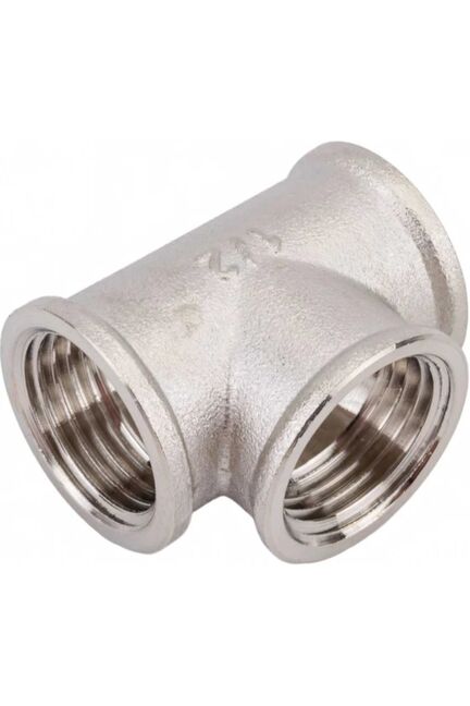 Латунный тройник Ду 15 ВР никелированный: прочный, коррозионностойкий, выдерживает давление до 16 бар, для воды и отопления, прост в монтаже и надёжен в эксплуатации.