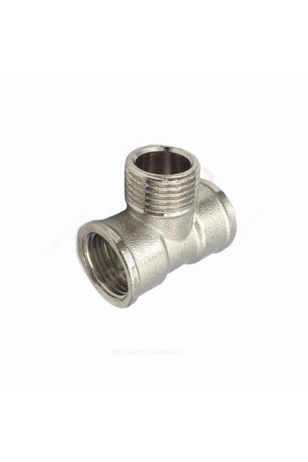 Латунный никелированный тройник Ду 15 ВР-НР-ВР, выдерживает до 16 бар, обеспечивает герметичность и долговечность соединений в сантехнике.