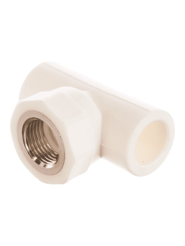 Тройник PPR 20х1/2" с латунной втулкой, выдерживает давление до 25 бар, для соединения пластика с металлом в системах водоснабжения и отопления.