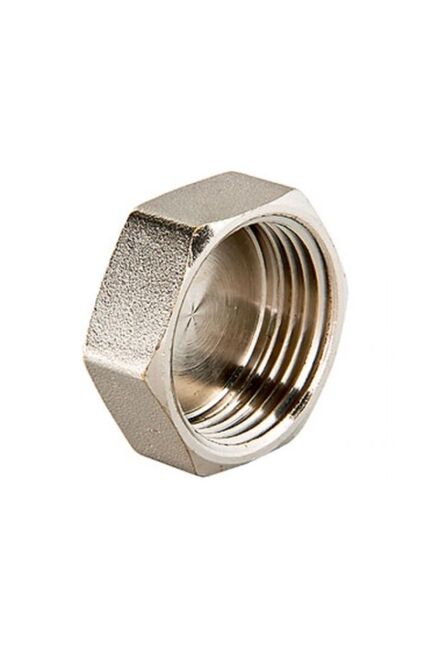 Латунная никелированная заглушка с внутренней резьбой Ду 25 для надежного герметичного перекрытия труб в системах воды и отопления.