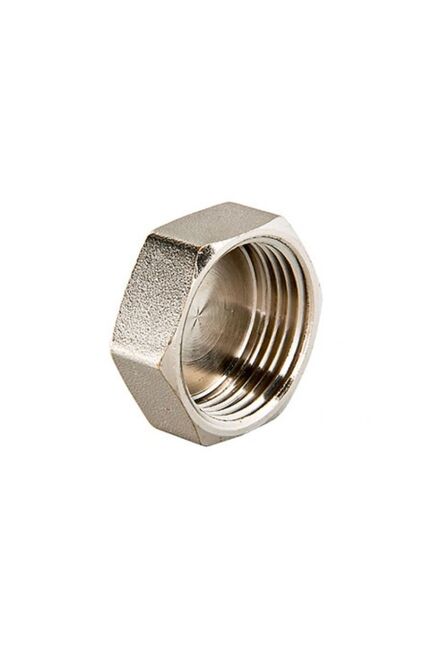 Латунная никелированная заглушка с внутренней резьбой Ду 25 для надежного герметичного перекрытия труб в системах воды и отопления.