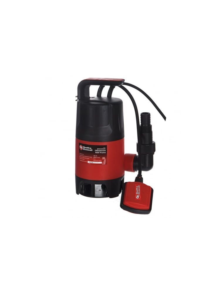 Дренажный насос QUATTRO ELEMENTI Drenaggio 400 F Promo предназначен для перекачивания грязной воды с твердыми частицами размером до 35 мм. Мощный дренажный насос на 400 Вт с производительностью 7500 л/ч для отвода чистой и слабозагрязненной воды. Надежный, компактный, автоматический.