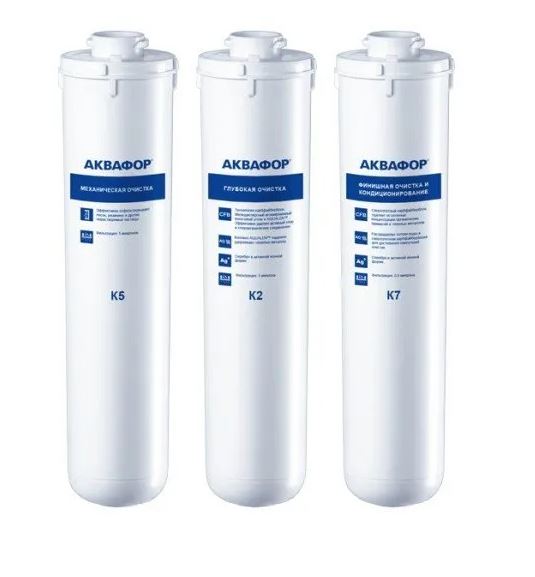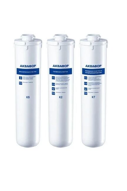Комплект сменных модулей К3-К2-К7 предназначен для систем очистки воды Аквафор серии Кристалл. Пластиковая кассета обеспечивает глубокую очистку проточной воды из крана от хлора, тяжелых металлов, железа и других примесей, содержащихся в воде. Универсальный водяной хозяйственный модуль К3 создан для предварительной механической фильтрации воды. Он защищает от попадания крупных примесей и растворенных частиц ржавчины и железа. К2 - очищающая кассета с внутренней угольной мембраной для глубокой чистки. Удаляет хлор, органические примеси, тяжелые металлы, делая воду чистой. Модуль К7 - финишная очистка воды и ее кондиционирование. Содержит серебро в активной ионной форме. Фильтрация до 0.8 микрон. Ресурс 8000 литров, но не более 1.5 лет.
