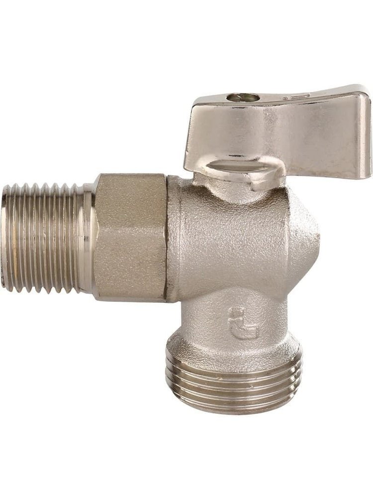 Угловой шаровый кран 15х20 для стиральной машины, латунь, надежное перекрытие воды, монтаж даже в стеснённых условиях, устойчив к коррозии.