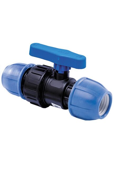 Компактный компрессионный кран PN10 d32 для ПЭ труб — надёжно перекрывает поток, легко монтируется без пайки, подходит для водоснабжения и полива.
